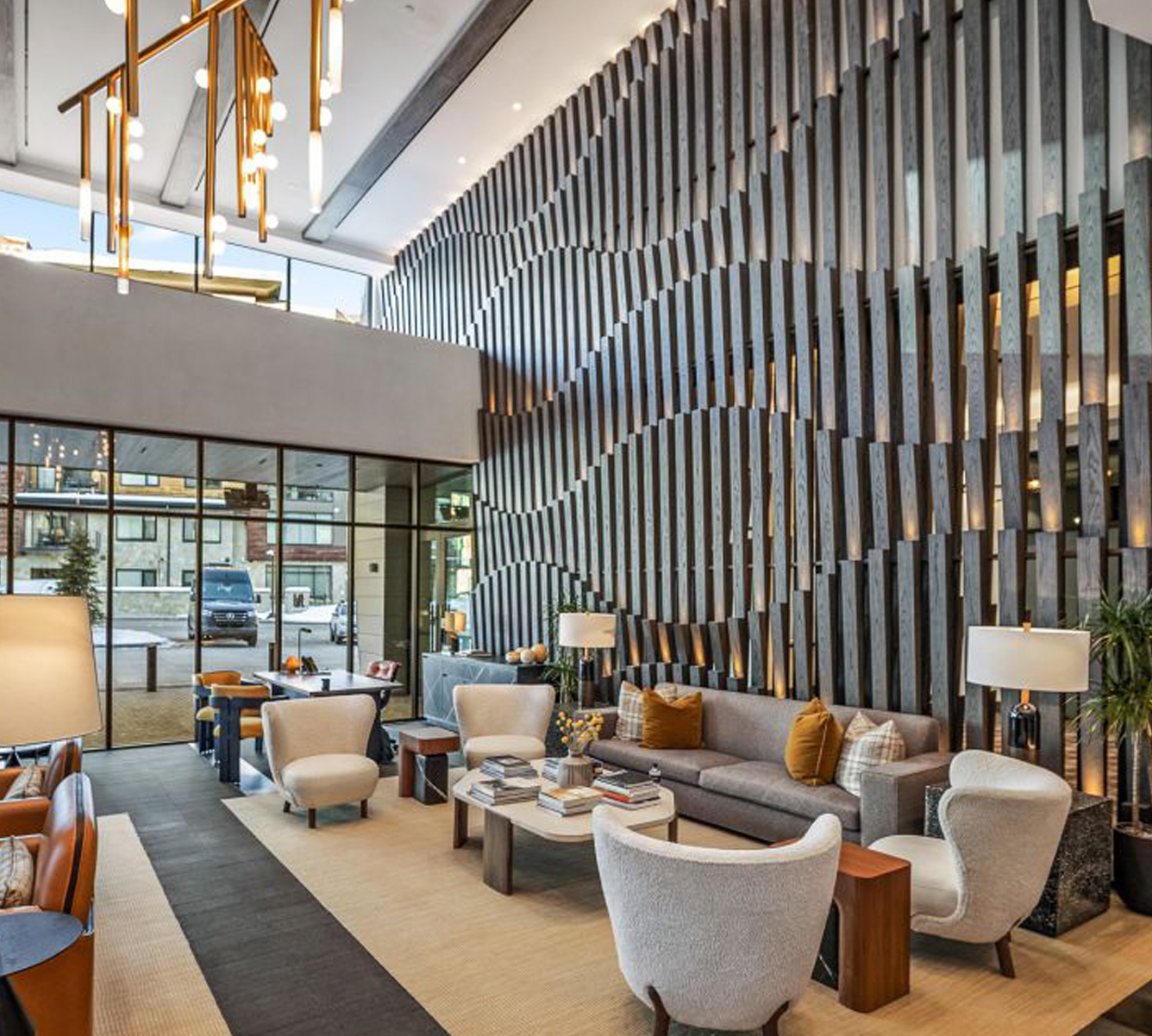 Mountain Pacific Construction faced and overcame significant alpine construction challenges, including the removal of nearly 97,000 cubic yards of earth and the installation of a 30-foot soil-nail retention wall to stabilize the sloped terrain and bedrock. Construction sequencing was carefully planned to avoid disruption to surrounding ski lifts and resort operations. The structural and exterior envelope—featuring steel framing, stone and metal cladding, expansive glazing, and high-density insulation—was built to meet Pendry’s contemporary design goals while performing reliably in a high-snow, high-altitude environment. Underground parking, ski access, and the integration of rooftop and lobby amenities all required precise coordination across teams to maintain safety and keep the resort area accessible during construction.